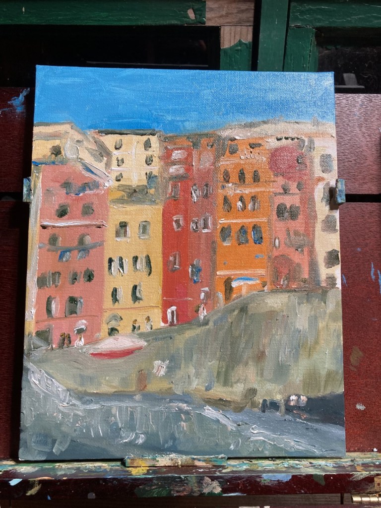 A few years back I traveled to the Cinque Terre coastal region of Italy. I went there in late September after the big crowds but water and weather was still warm. We stay in Monterossa for 5 days while we hike and explored the 5 (cinque) different coastal cities. These paintings are based on images I took while I as there.