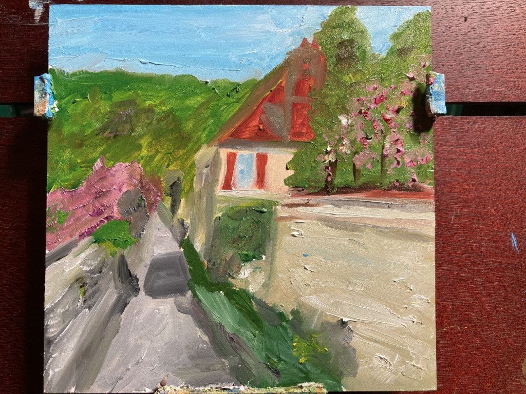 What better place to do a country side landscape than Giverny, France. I’ve visited Monet’s home and garden twice now. This particular street is on the way to Monet’s house and garden.