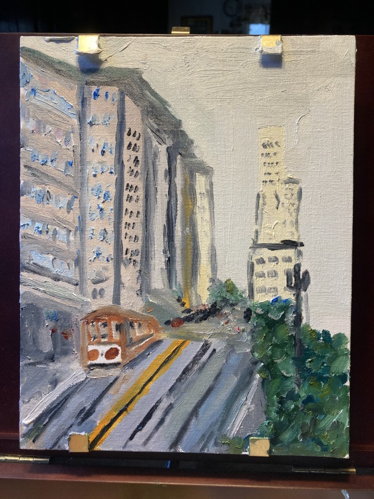 I decided to continue to experiment with my new oil/water paints called duo. My third painting of this new medium that I am working was created for Ellie, my daughter. I’m planning to work with these paints as they can be thinned and brushes cleaned without solvents. This allows me to paint in more contained spaces.