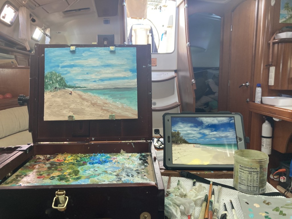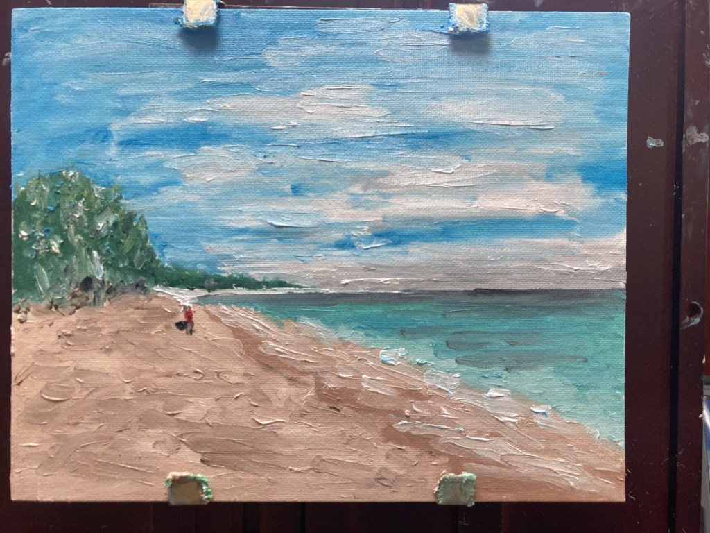 This is a painting of Alicia walking on this 1.5 mile beach and there is not another soul on the beach besides us.