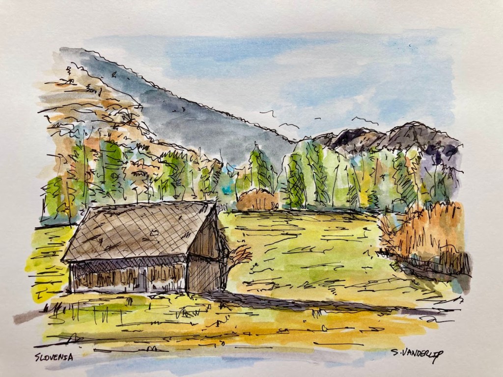 This year I did a few quick ink sketches and watercolors for holiday cards. Here are some of the sketches I put together.