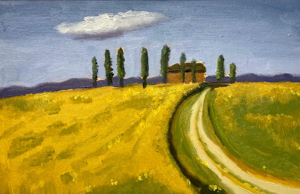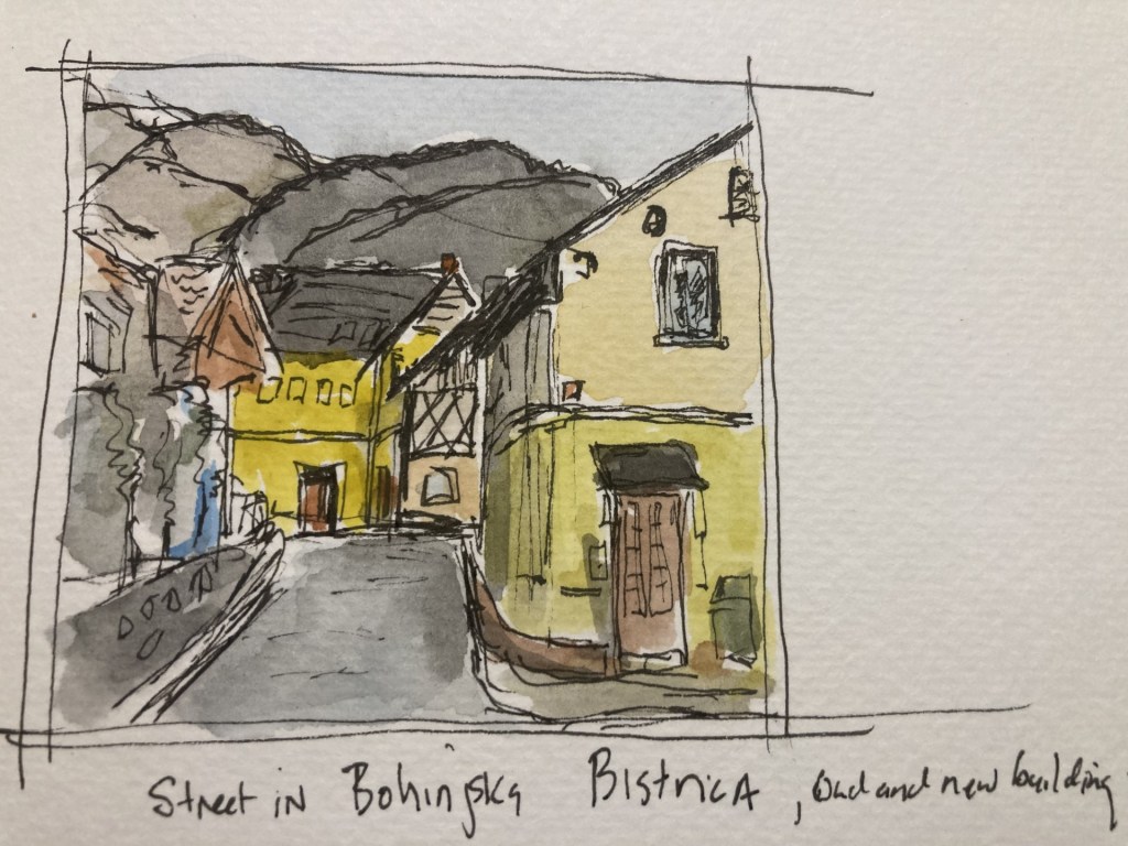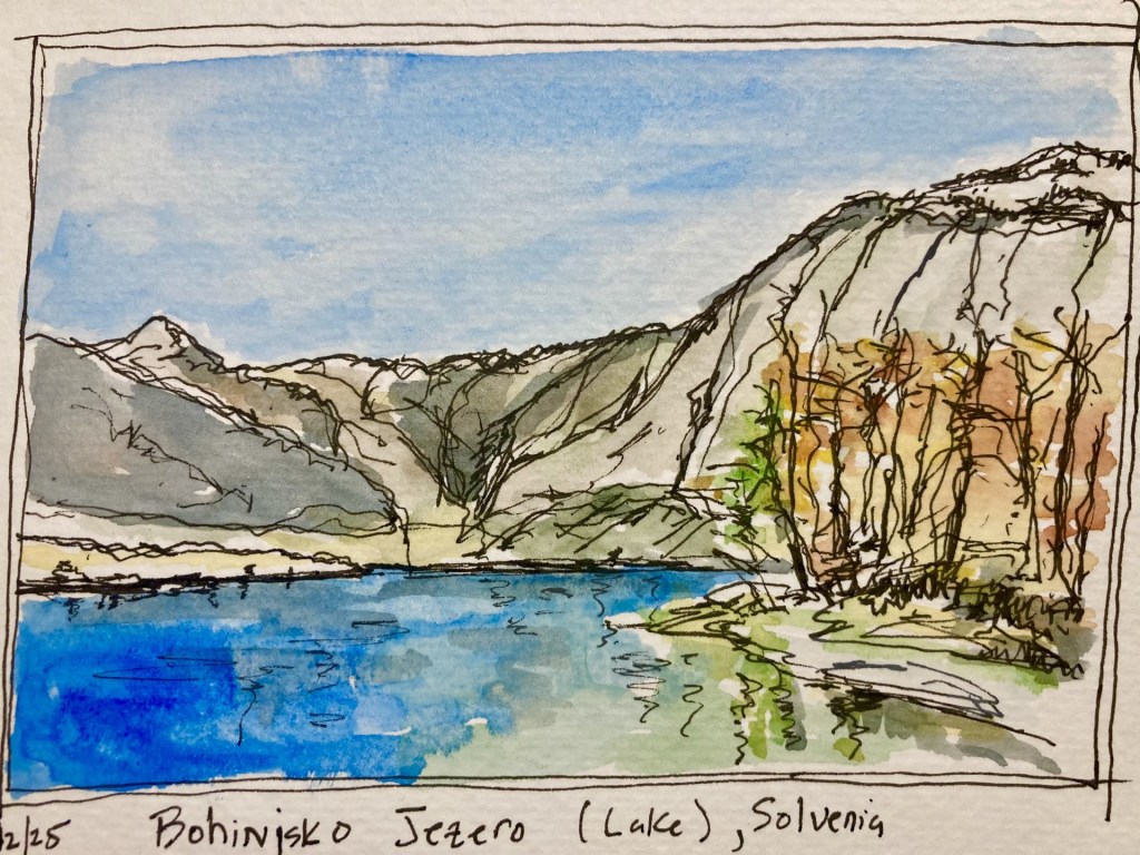 In Greece, I picked up a watercolor journal book and started to draw/watercolor scenes as I traveled thru Greece, Austria, Slovenia, and Czech. The sketches were helpful to decide what to paint.