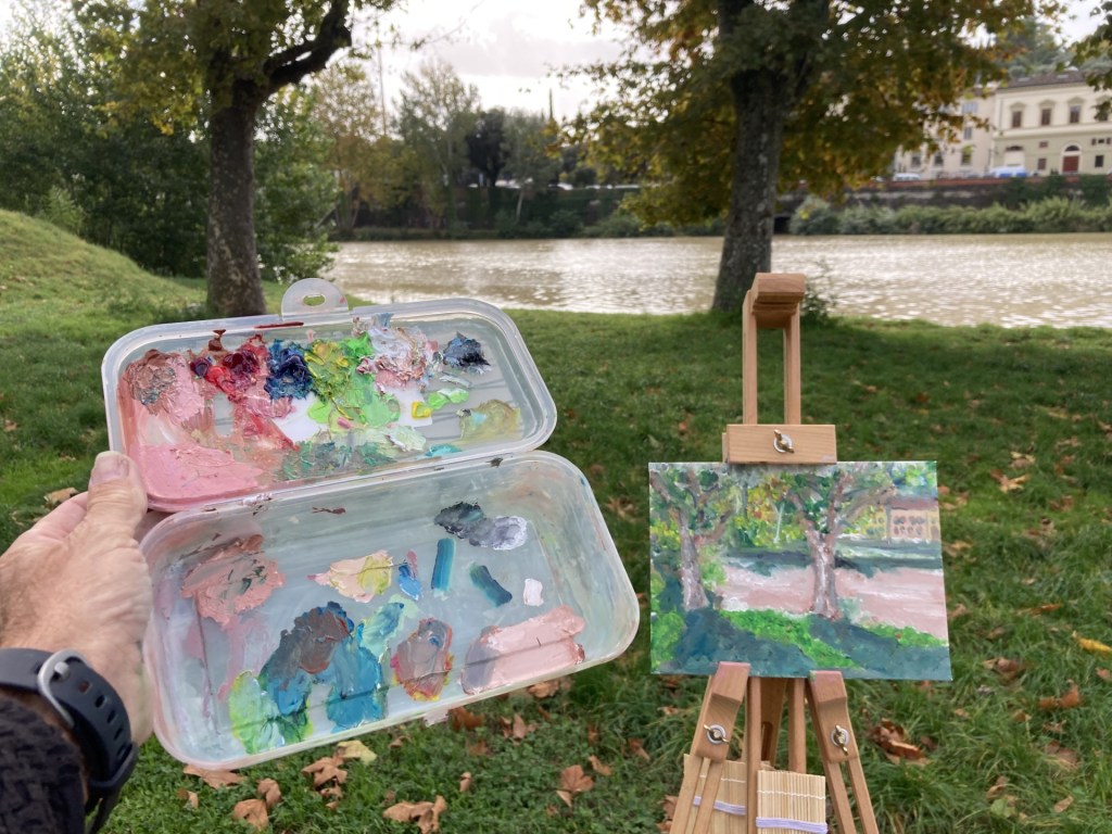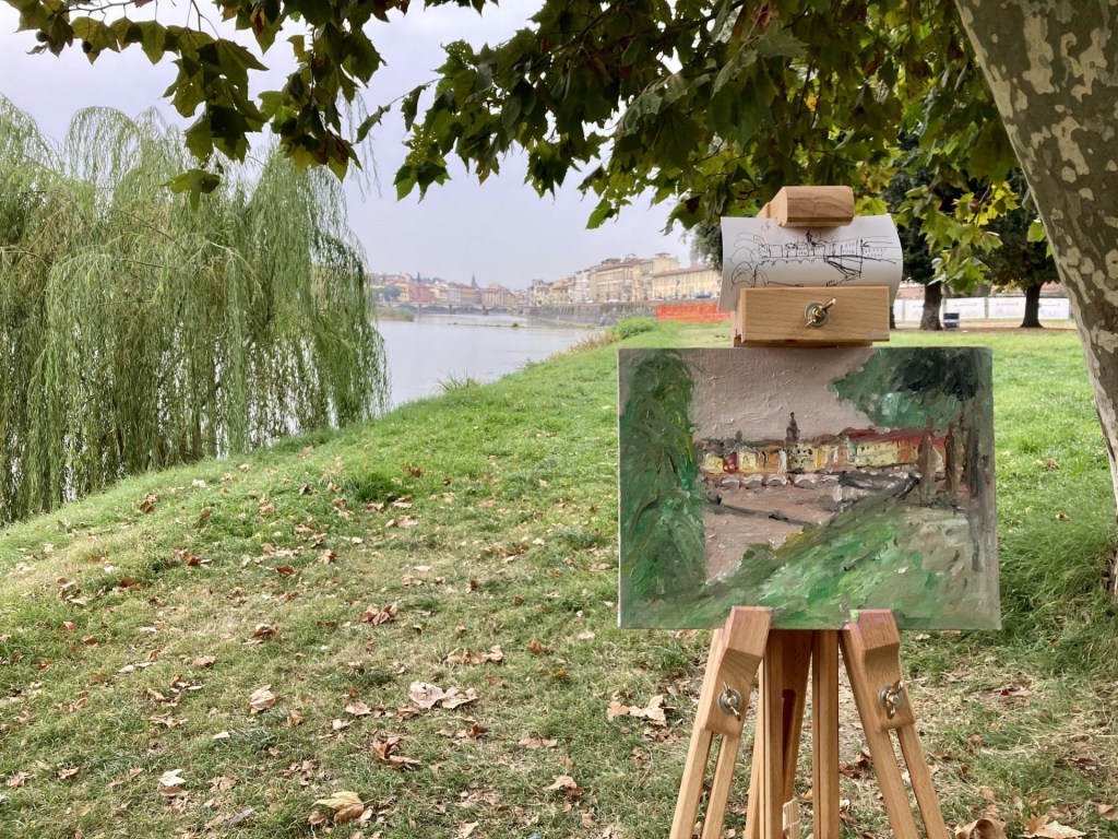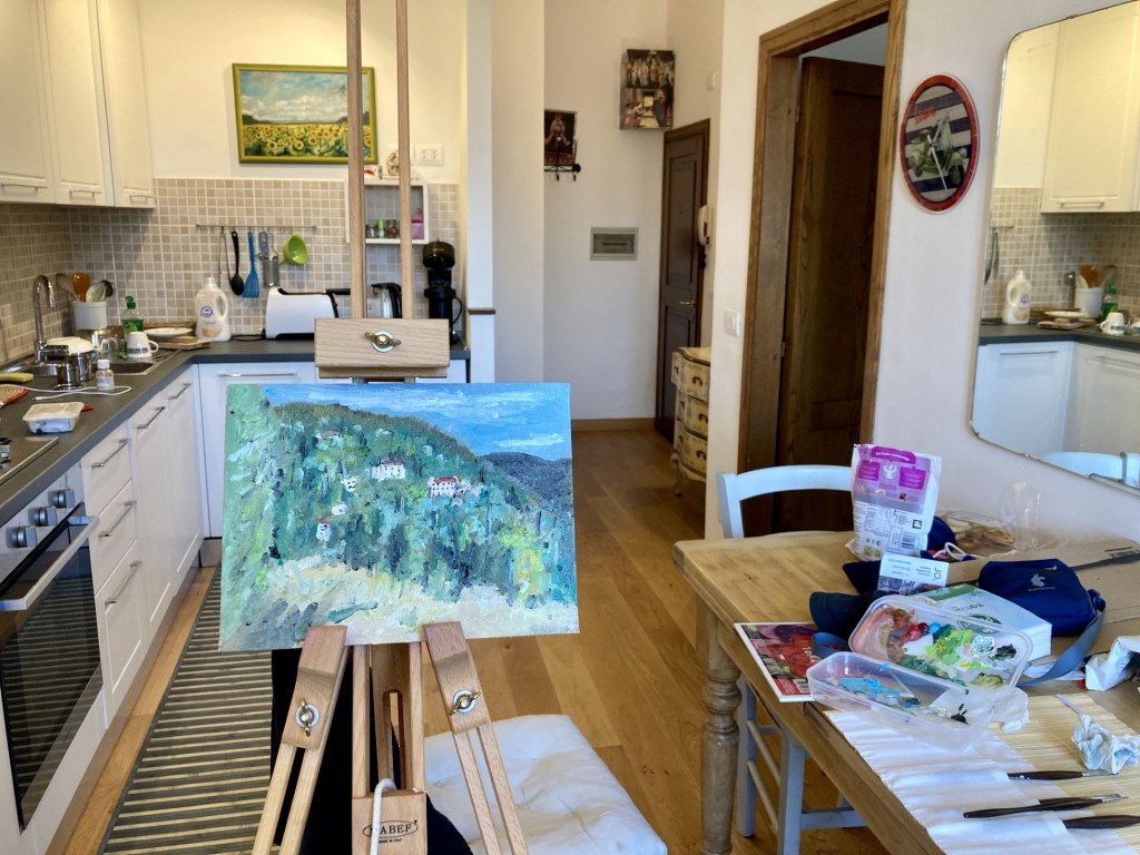 Rain came to Florence for a few days forcing me to paint inside my apartment so here is a picture of my studio