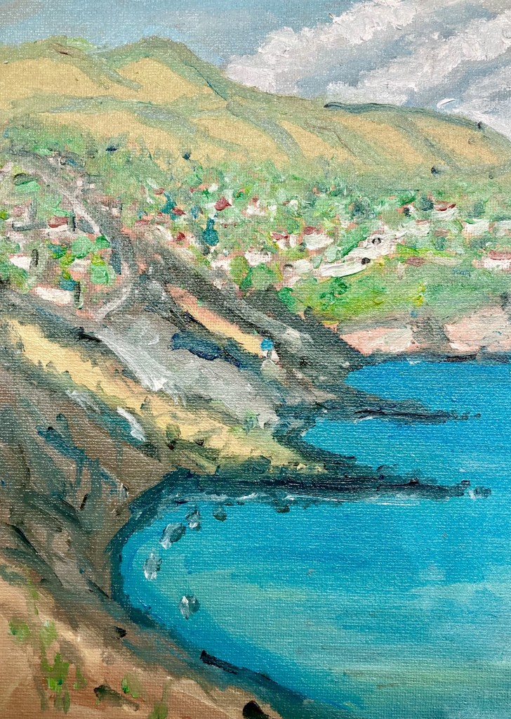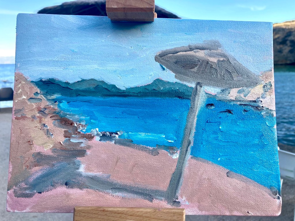 After hiking around the coastline near Rafina, I decided on this view to paint.